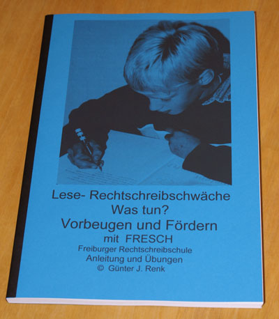 Das Lernbuch "LRS - Was tun? Vorbeugen und Fördern mit FRESCH" beinhaltet die Darstellung der Methode FRESCH und umfangreiches (ca. 90 Seiten) Übungsmaterial für alle Strategien sowie die Merkwörter. |