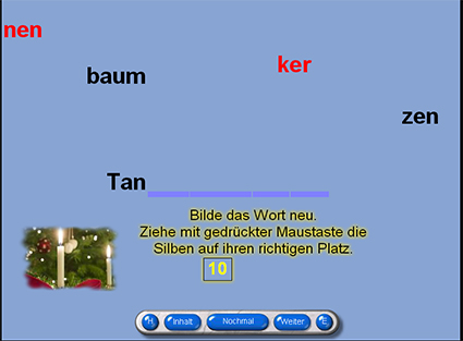 Wörter werden aufgebaut, indem die Silben an den richtigen