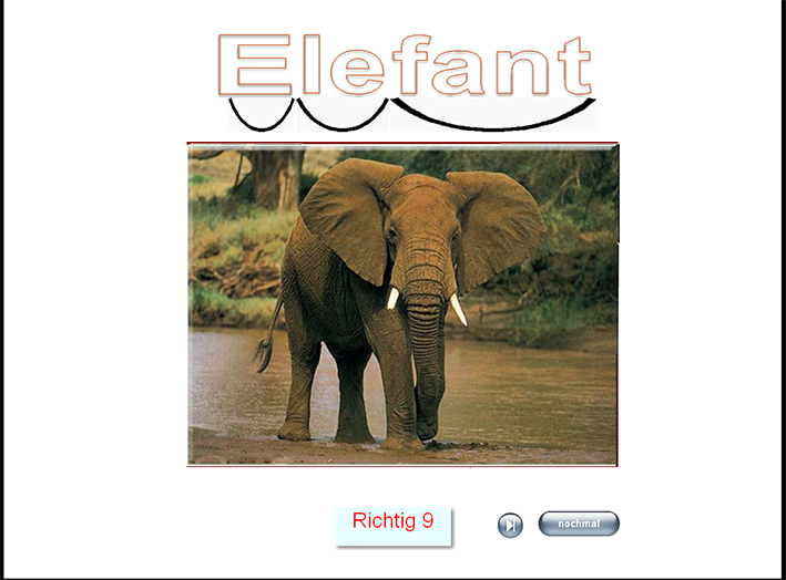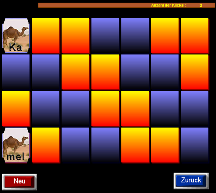 zweisilbige Tiere aufgedeckt werden. Das Memory kann immer neu begonnen